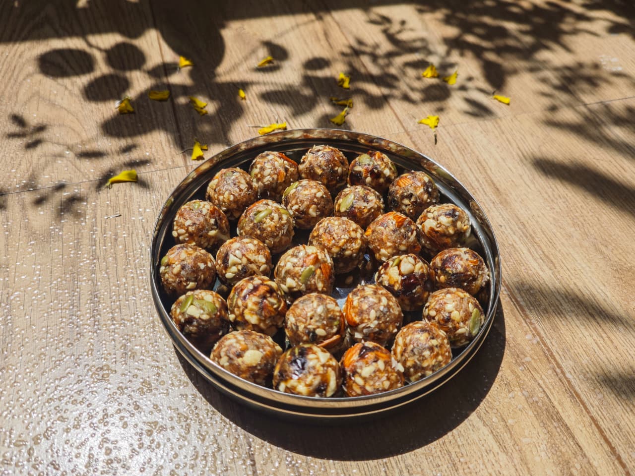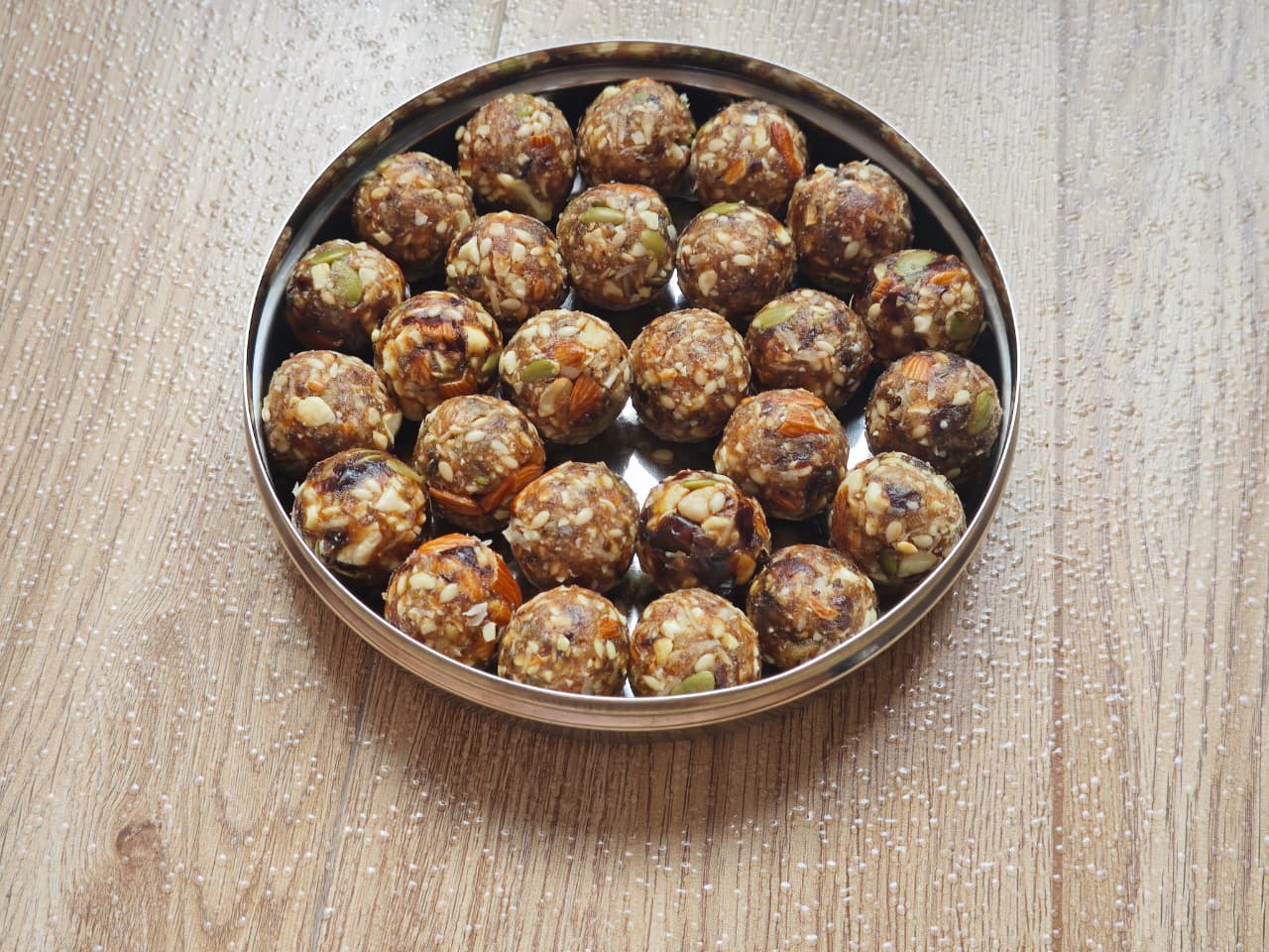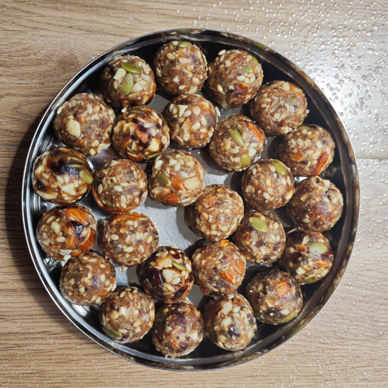 INGREDIENTS : Dates (Khajoor) As The Base, Along With A Combination Of Nuts Like Almonds, Cashews, And Pistachios. Common Additions For Binding And Flavor Are Ghee, Cardamom Powder, And Dried Coconut, While Other Ingredients Like Poppy Seeds, Figs, Raisins, And Watermelon Seeds Are Often Included.